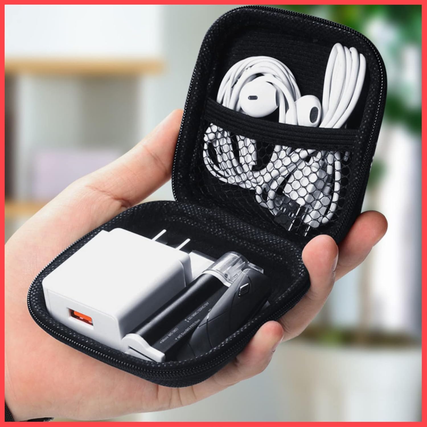 Wolpin Portable Travel Organizer Case for Earphones, Data Cables, Charger, Pen Drives, Memory Card, (Black)