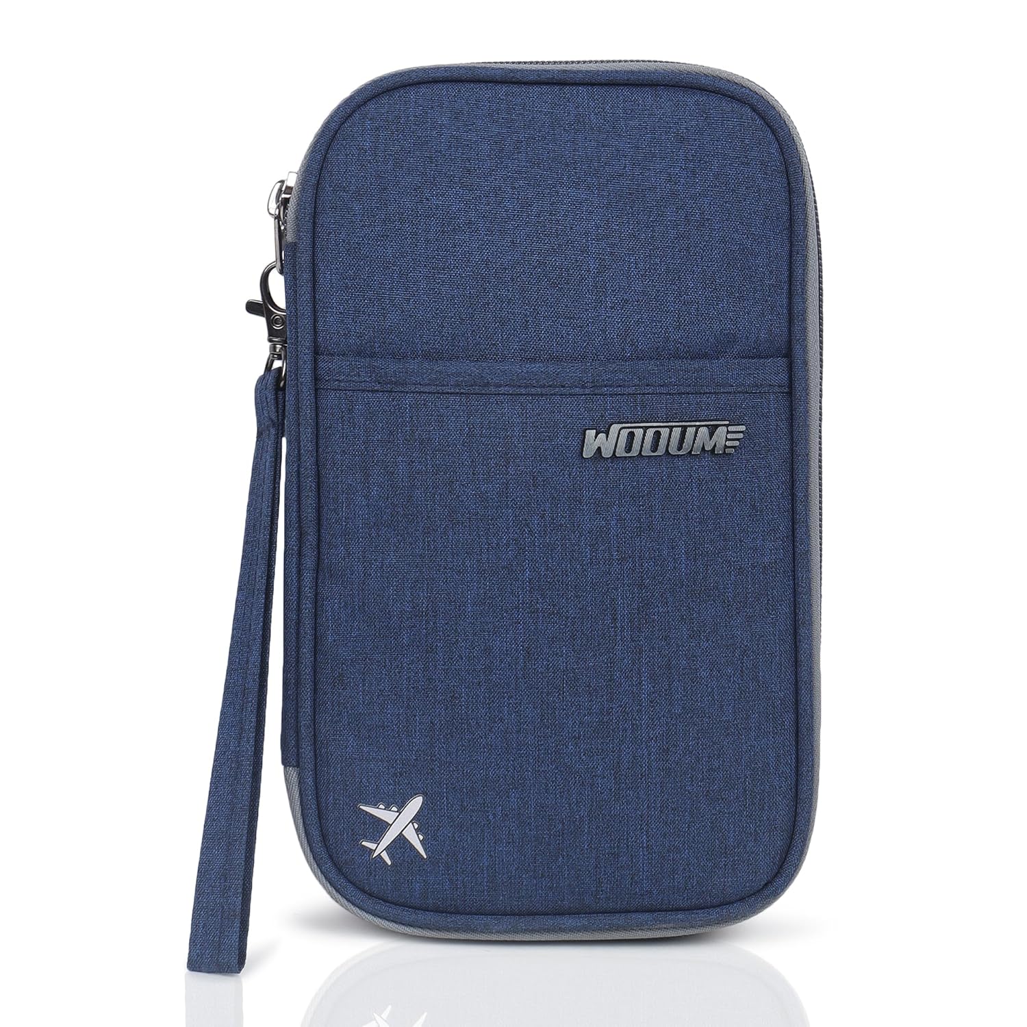 Wooum Passport Holder for Women & Men, Passport Wallet with Boarding Pass Holder & Pen Holder, Travel Document Holder, Passport Organizer with Credit Card Holder, Travel Accessory Bag, (Navy Blue)
