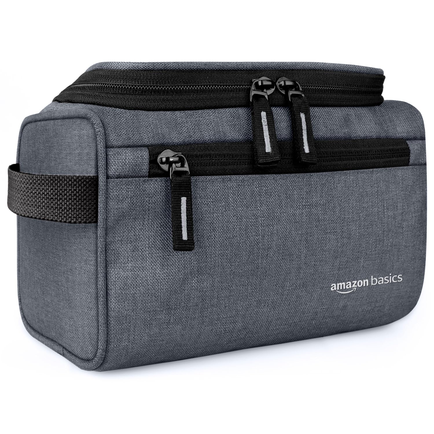 Amazon Basics Travel Bag | 6L Toiletry Organizer Hanging Dopp Kit | Cosmetics Pouch | for Men & Women | Multiple Compartments | Durable | Water-Resistant | (Dark Grey)